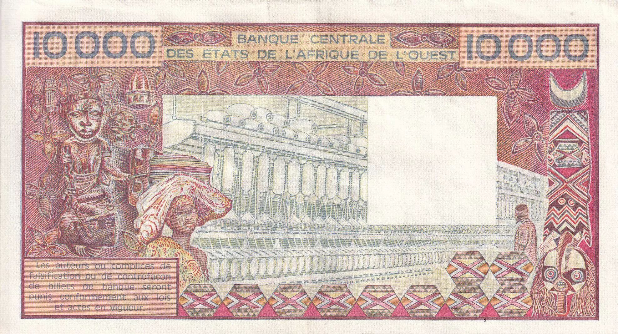 Home > World Banknotes > African Banknotes > West African States > West AFrican States 10000 Francs - Spinning - ND (1989) - Serial S.041 - Letter A (Ivory Coast) - P.109Ai