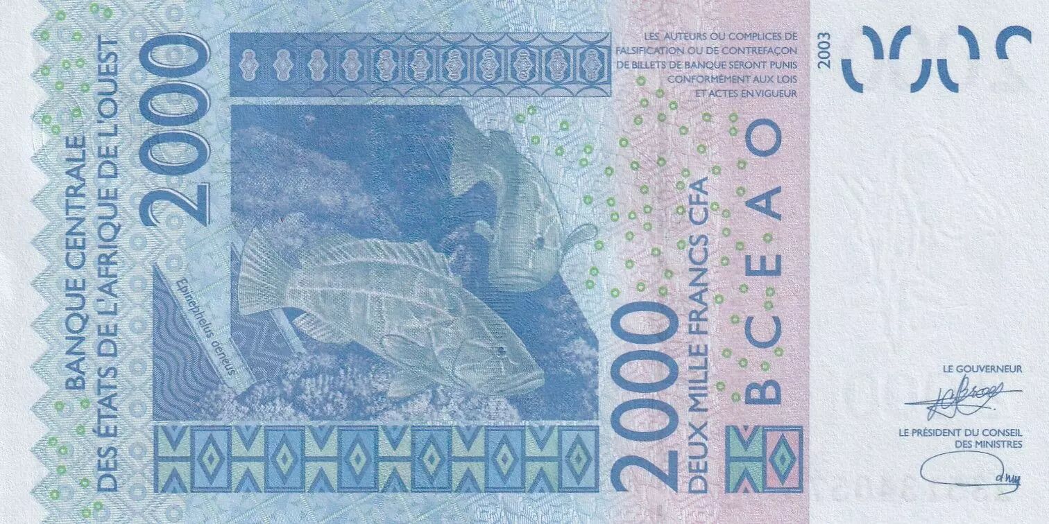 Home > World Banknotes > African Banknotes > West African States > West AFrican States 2000 Francs - Mask - Fishs - 2023 - Letter D Mali