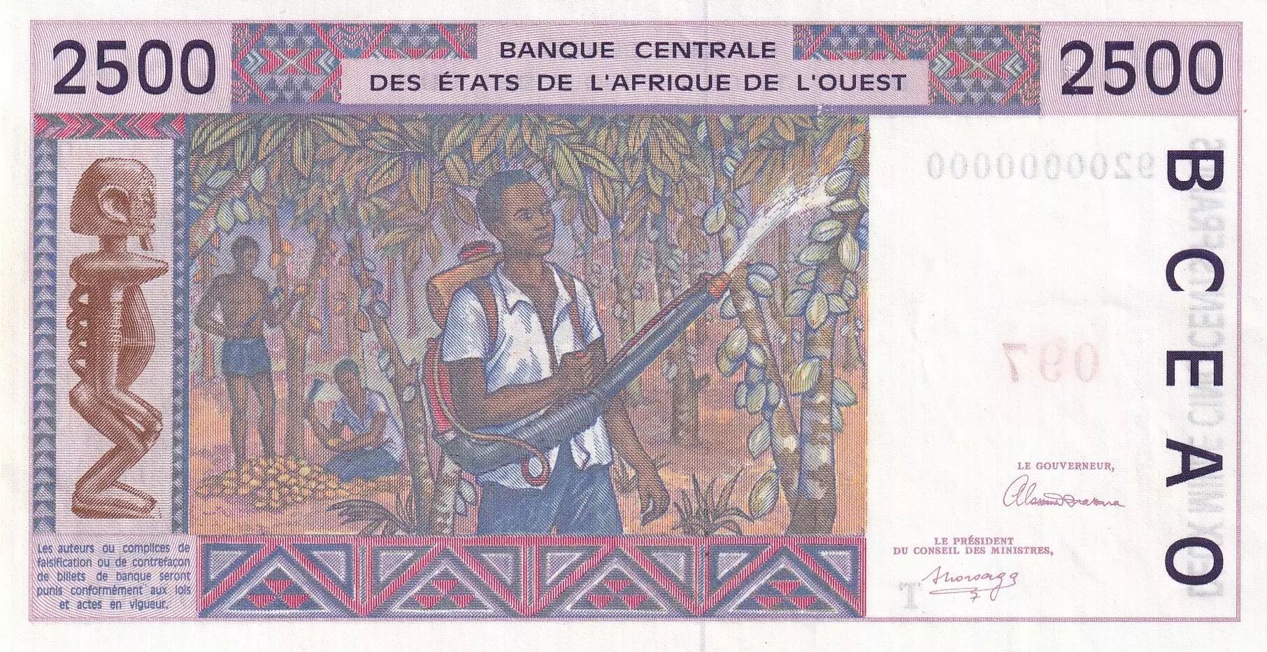 Banknote West AFrican States 2500 Francs - African - Village scene - 1992 - Togo - Specimen