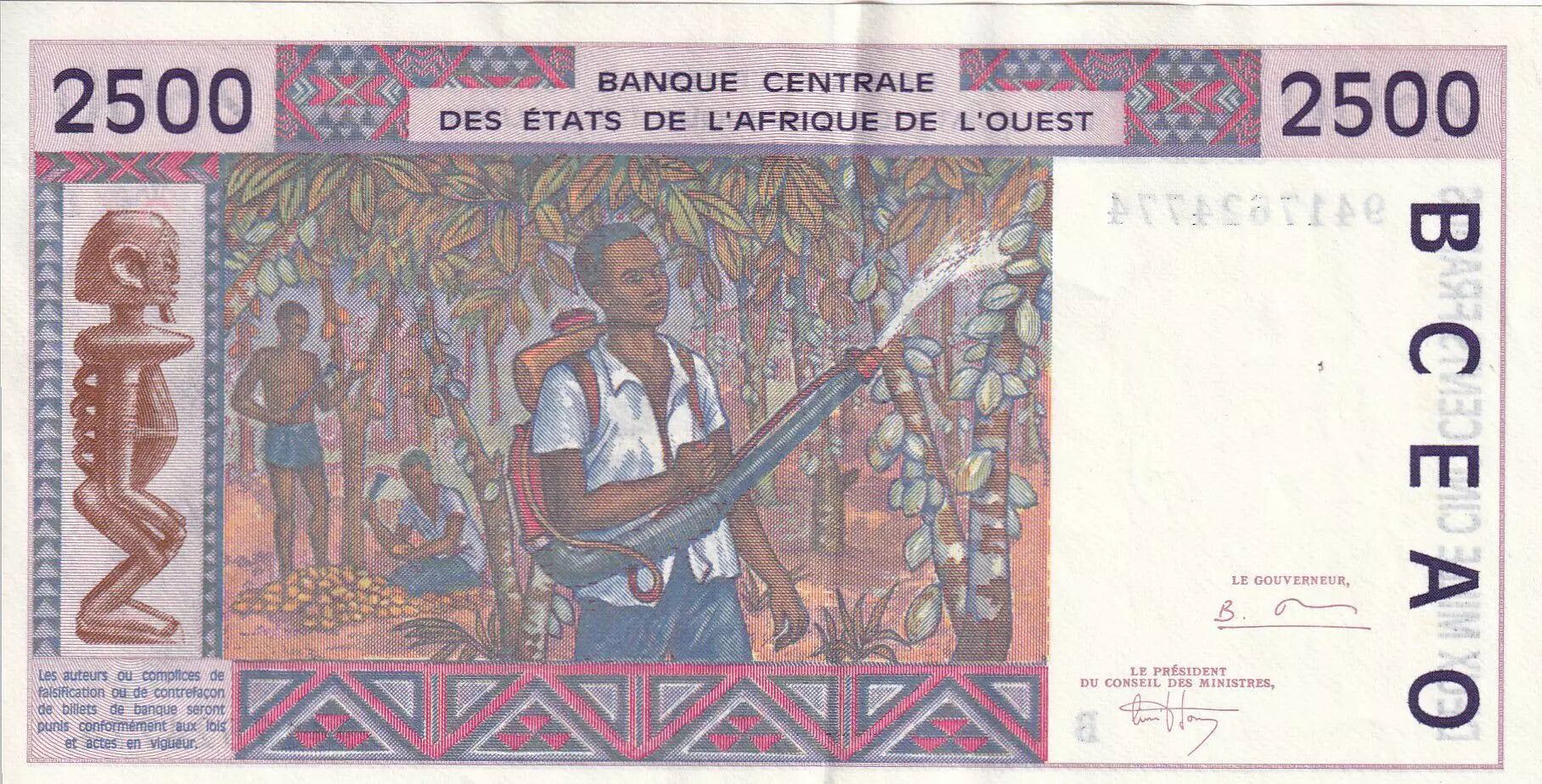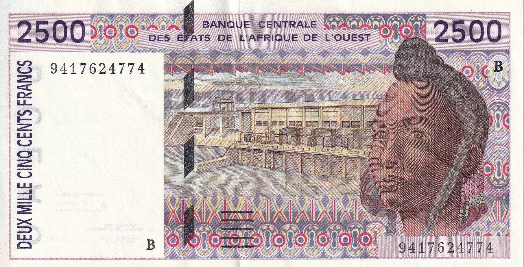 Banknote West AFrican States 2500 Francs - African - Village scene - ND (1994) - B (Benin) - P.212Bc