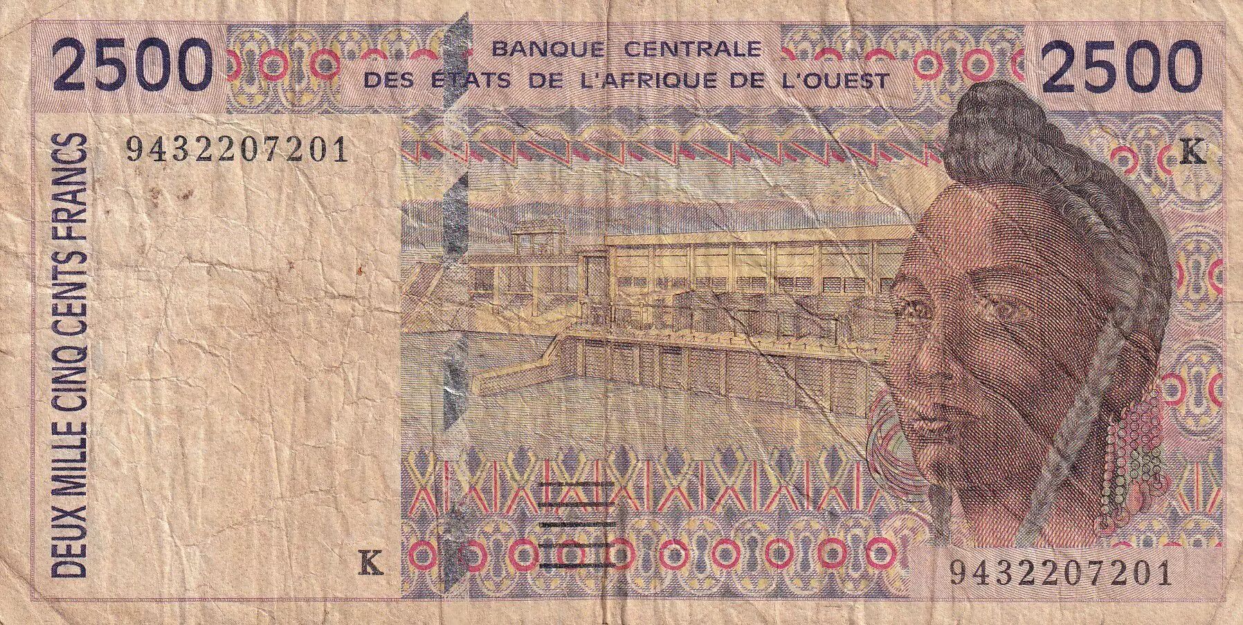 Banknote West AFrican States 2500 Francs - Woman - Village scene - ND (1992-1994) - Letter K (Senegal) - P.712K