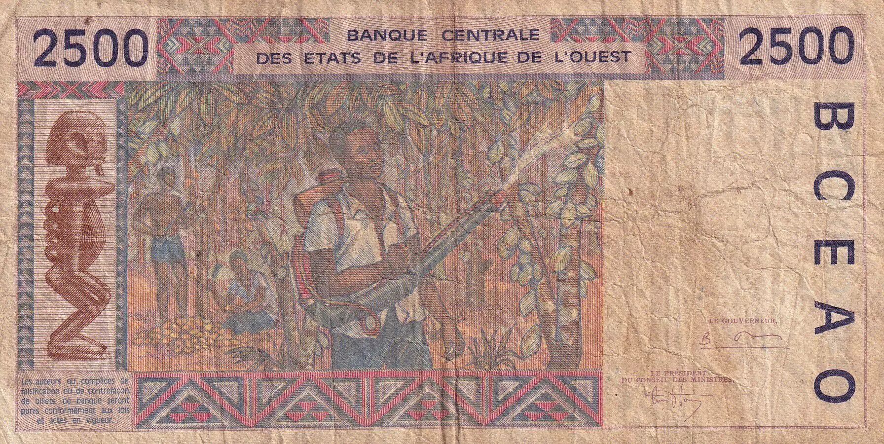 Home > > West AFrican States 2500 Francs - Woman - Village scene - ND (1992-1994) - Letter K (Senegal) - P.712K