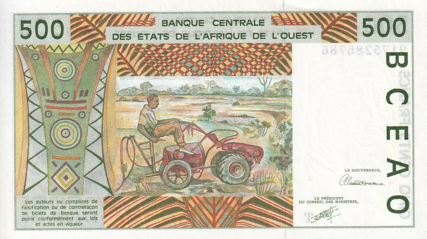 Home > > West AFrican States 500 Francs - Man, dam - Farmer - 1991 - Letter T (Togo) - P.810T.a