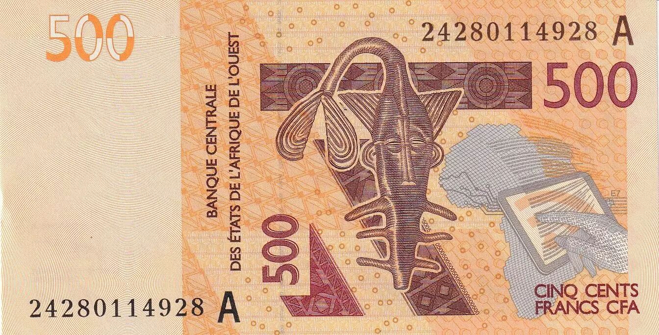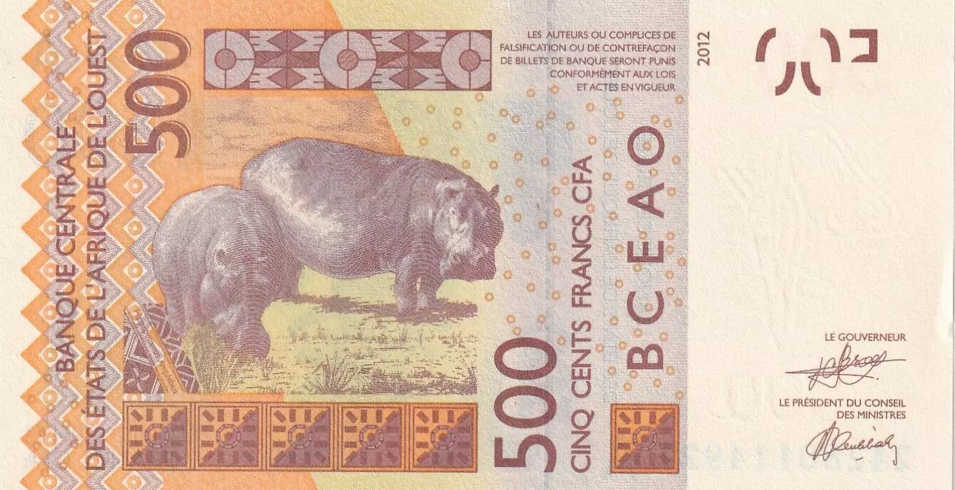 Home > World Banknotes > African Banknotes > West African States > West AFrican States 500 Francs - Mask - Hippopotamus - 2024 - Letter A