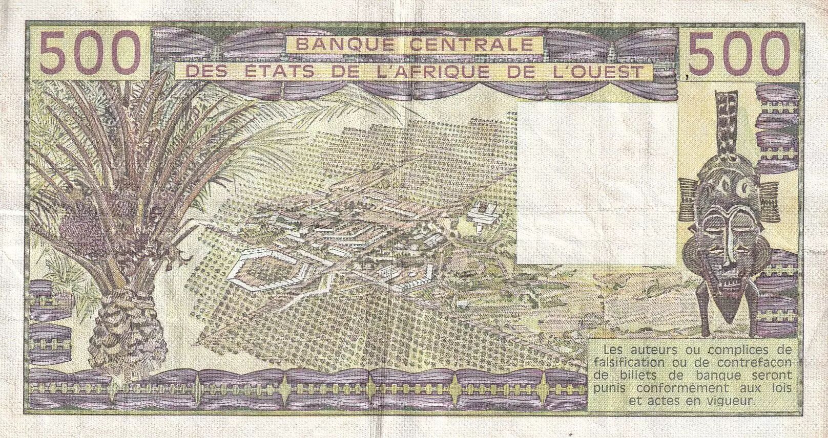 Home > > West AFrican States 500 Francs - Old man and ox - Letter K (Senegal) 1985 - Serial Q.14 - P.706Kh