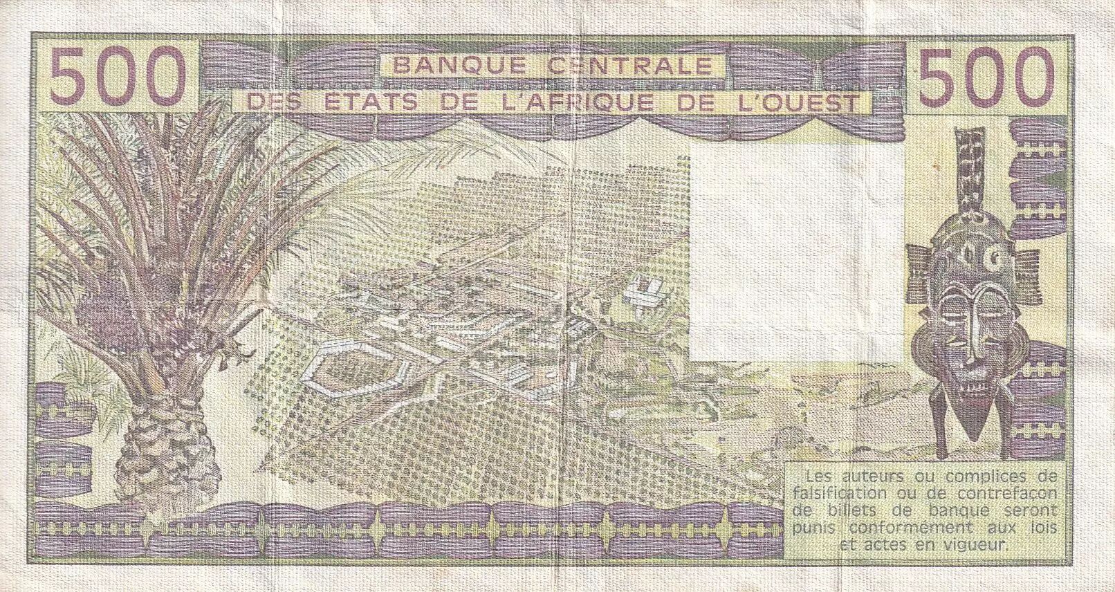 Home > > West AFrican States 500 Francs - Old man and ox - Letter K (Senegal) 1986 - Serial M.15 - P.706Ki