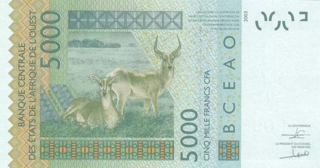 Home > World Banknotes > African Banknotes > West African States > West AFrican States 5000 Francs Mask - Antelopes - Burkina Faso 2017