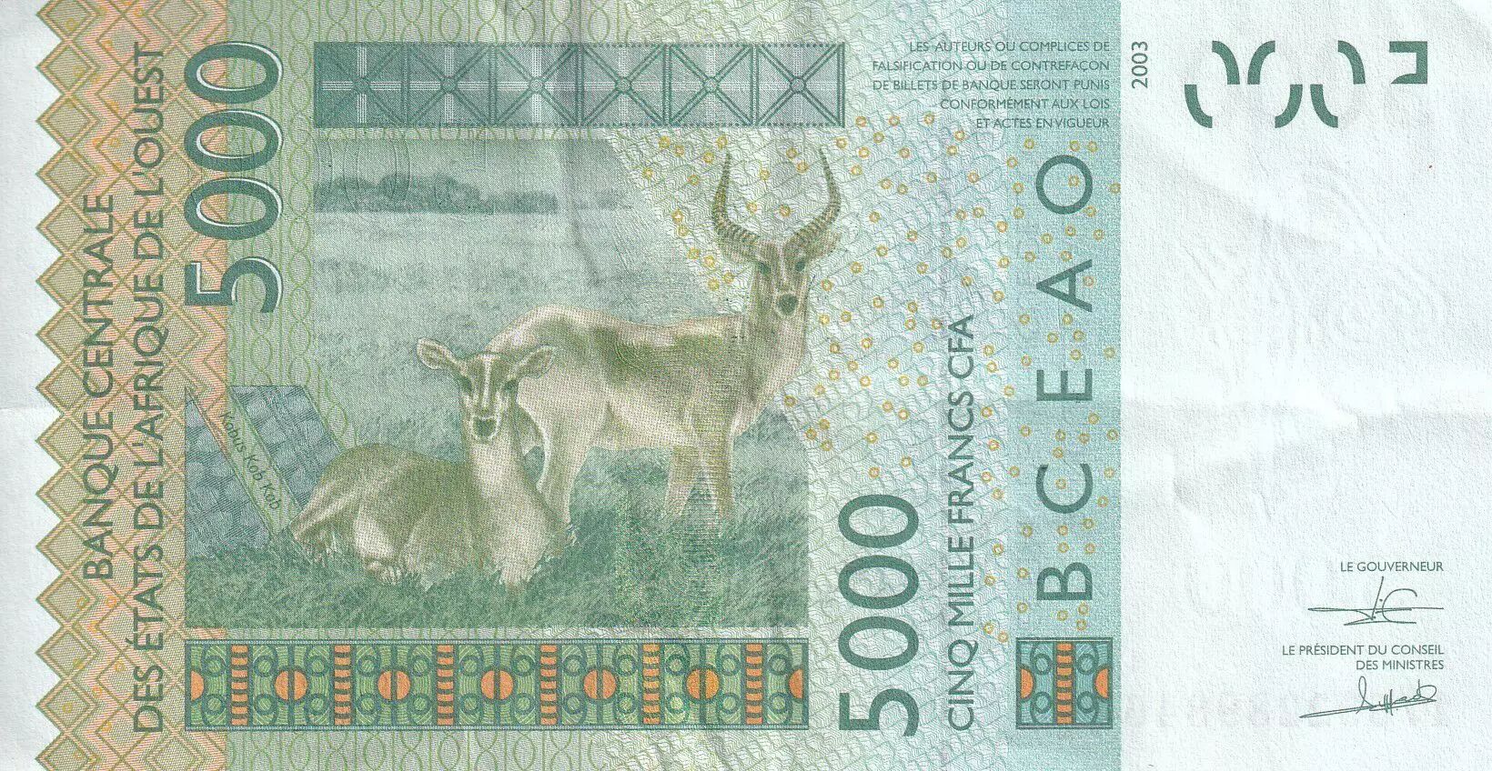 Home > > West AFrican States 5000 Francs - Masque - Kobus kob - 2017 - Letter K ( Senegal ) - P.717kQ