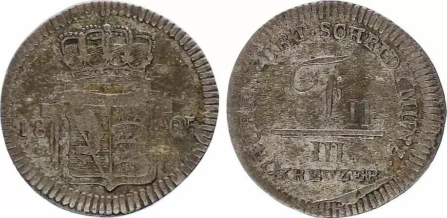 Pièce Wurttemberg 3 Kreuzer Frederic I, Armoiries - 1805