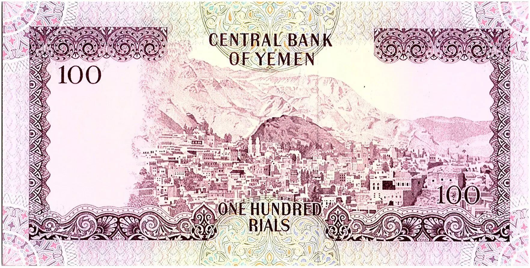 Banknote Yemen (Arab Republic) 100 Rials, Cherub and griffin - View of Ta'izz - 1976 - P.16