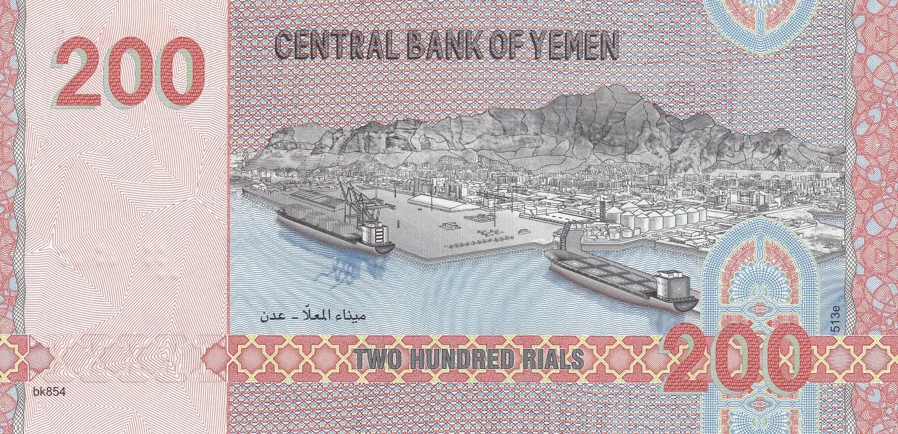 Ce billet de 200 rials combine des éléments visuels et textuels qui reflètent des aspects culturels et économiques du Yémen. Le choix des couleurs et des motifs, ainsi que les inscriptions en arabe et en anglais, témoignent de la complexité et de la diversité du pays. La représentation de la mosquée Al Janad et du port d'Al Ma'alla met en évidence des éléments importants du patrimoine et de l'infrastructure du Yémen.