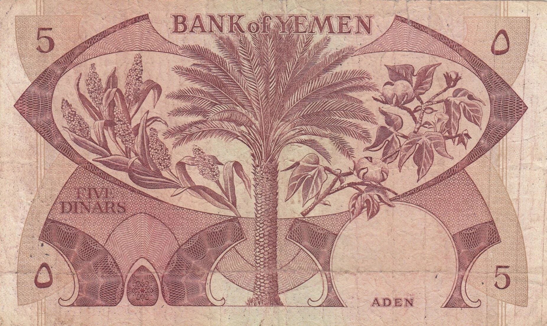 Ce billet de banque est émis par la République Démocratique du Yémen et possède une valeur nominale de 5 dinars. Son type de produit est un billet de banque.