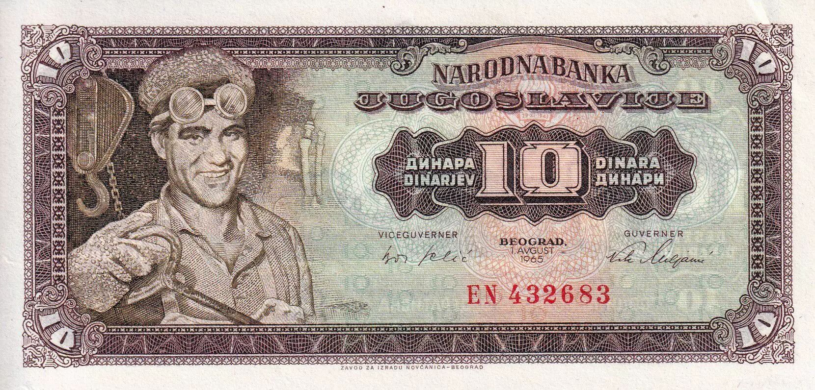 Accueil > Archivage > archivage-Billets du Monde > Yougoslavie 10 Dinara - Travailleur - Usine - 1965 - Série EN - P.78a
