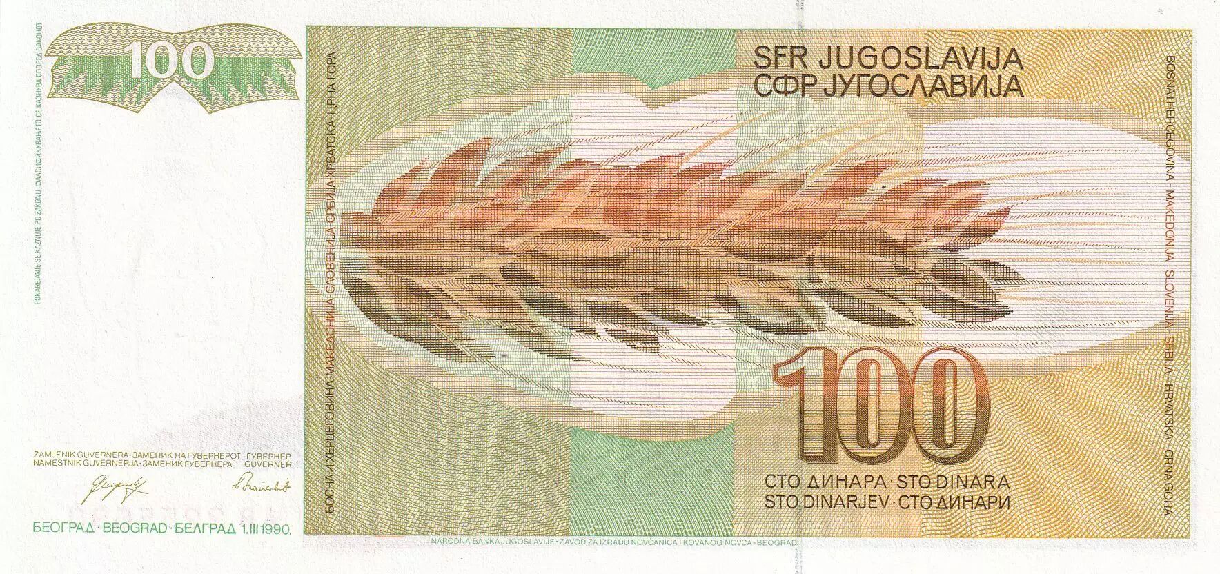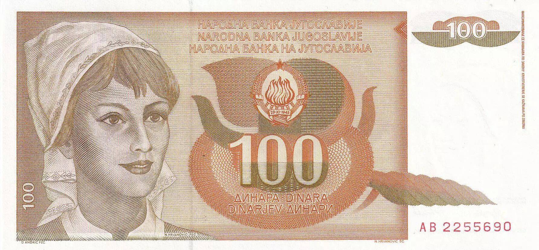 Accueil > Archivage > Yougoslavie 100 Dinara - Jeune femme - 1990 - Série AB - P.105