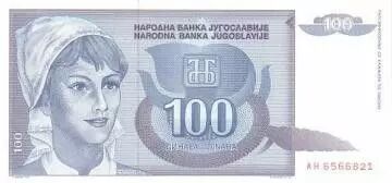 Accueil > Archivage > archivage-Billets du Monde > Yougoslavie 100 Dinara Jeune Femme - Blé