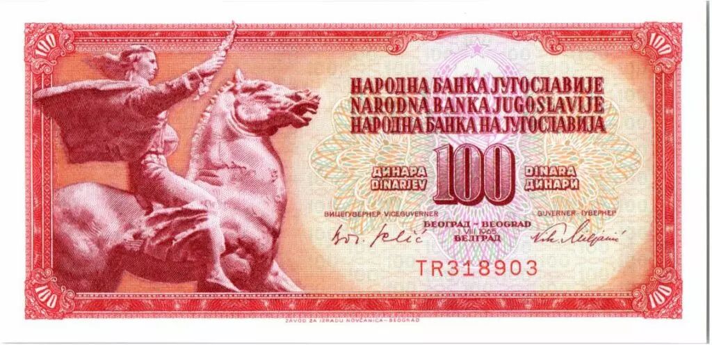Accueil > Archivage > Yougoslavie 100 Dinara - Statue Equestre Peace de Augustincic - 1965