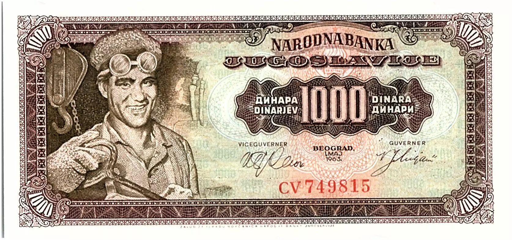 Billet Yougoslavie 1000 Dinara - Ouvrier - 1963