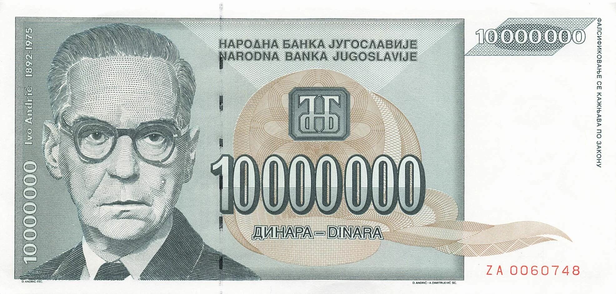 Billet Yougoslavie 10000000 Dinara - 1993 - Remplacement - P.122