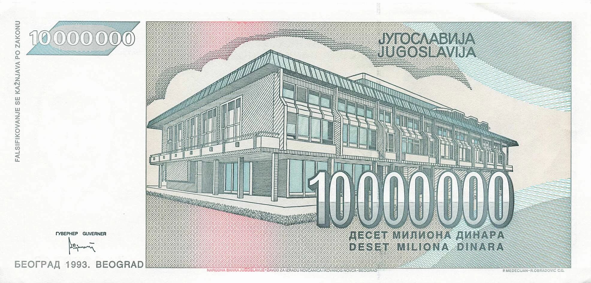 Accueil > Billets du Monde > Billets d'Europe > Yougoslavie > Yougoslavie 10000000 Dinara - 1993 - Remplacement - P.122