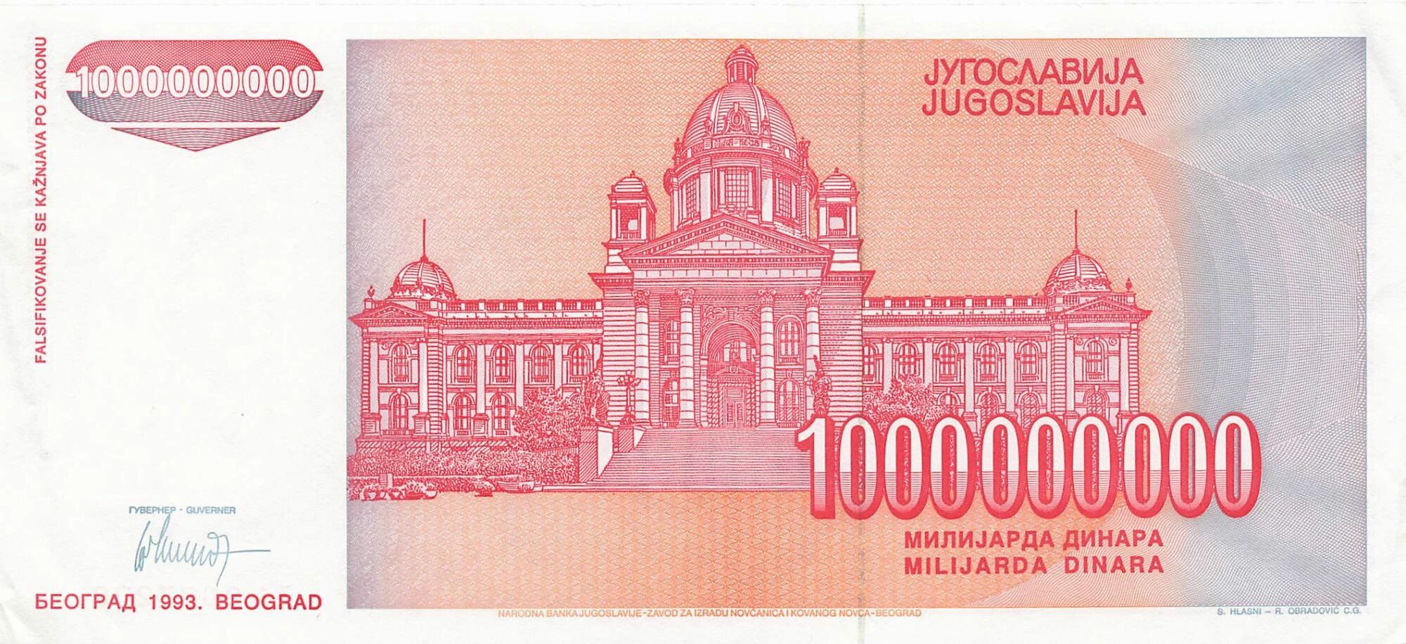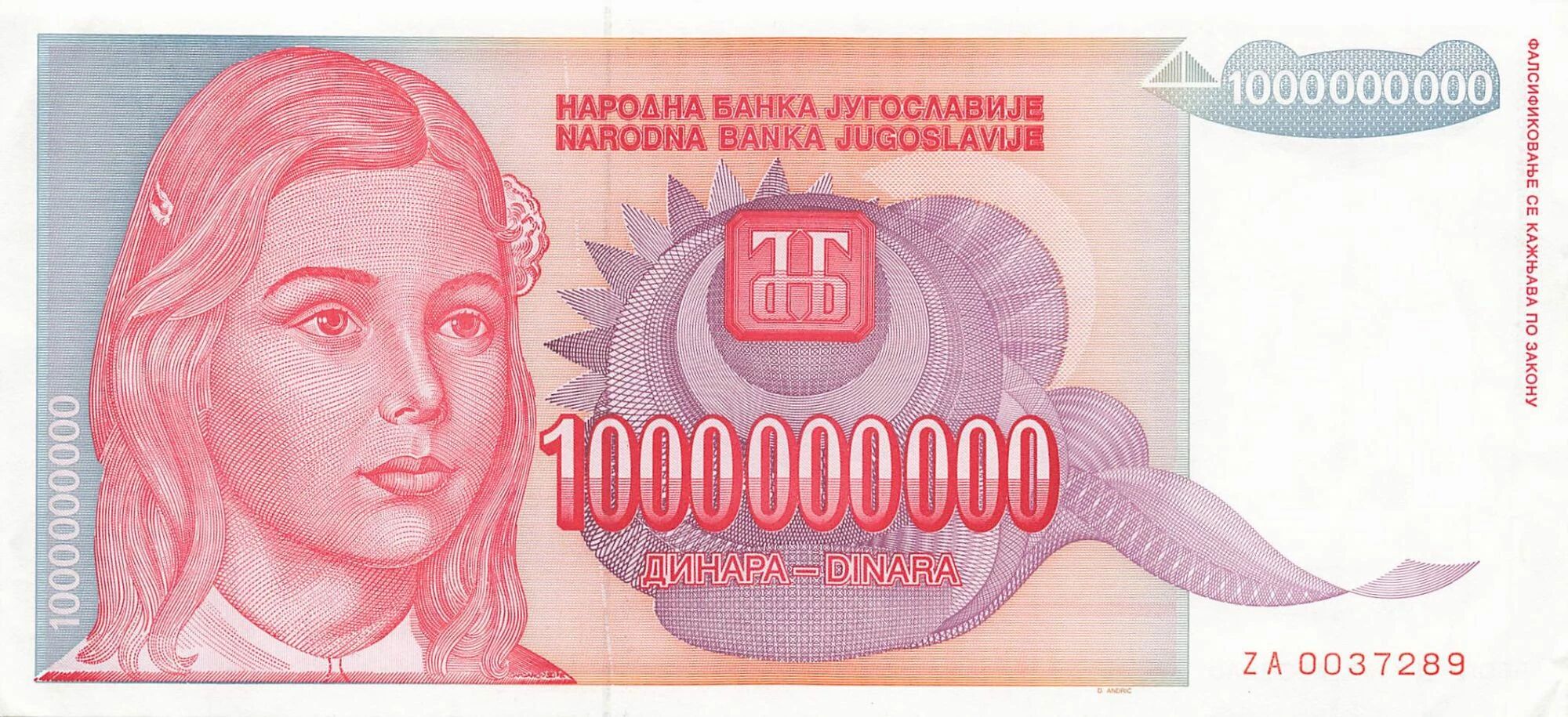 Billet Yougoslavie 1000000000 Dinara - 1993 - Remplacement - P.126