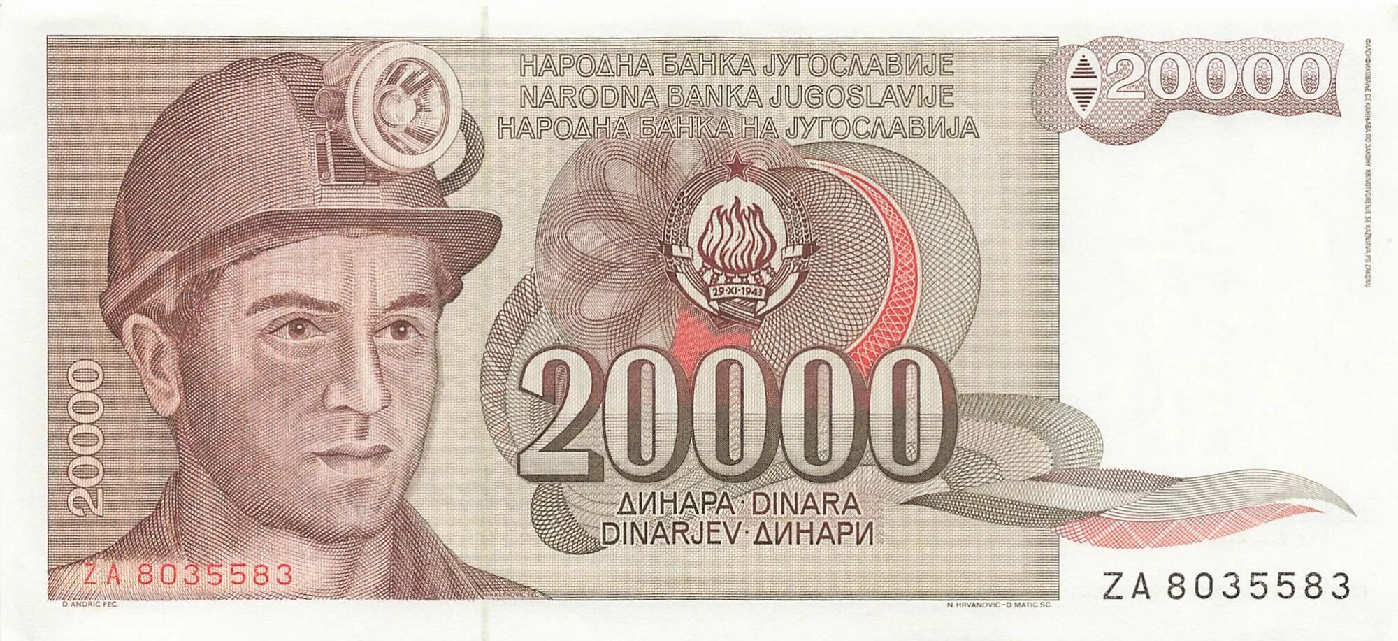 Accueil > Billets du Monde > Billets d'Europe > Yougoslavie > Yougoslavie 20000 Dinara - 1987 - Remplacement - P.95