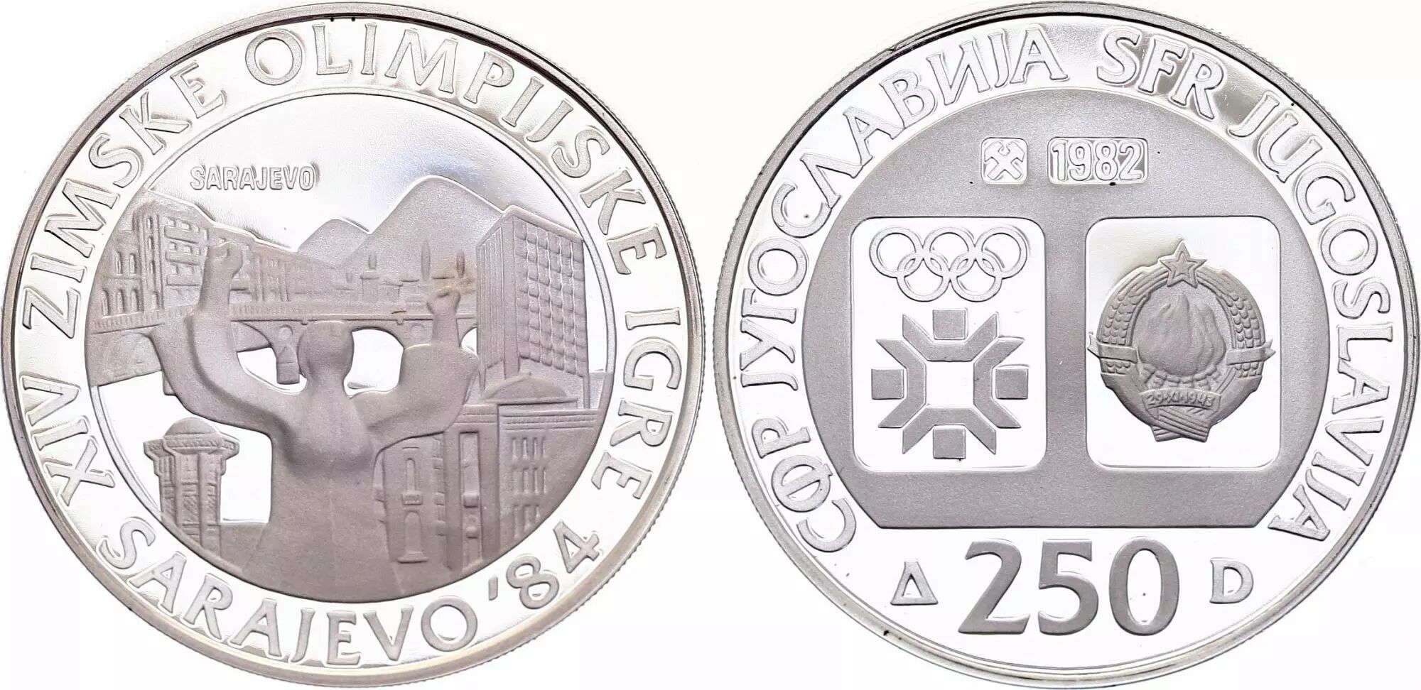 Pièce Yougoslavie 250 dinara - Jeux Olympiques de Saravejo de 1984 - Argent - 1982 - Frappe BE
