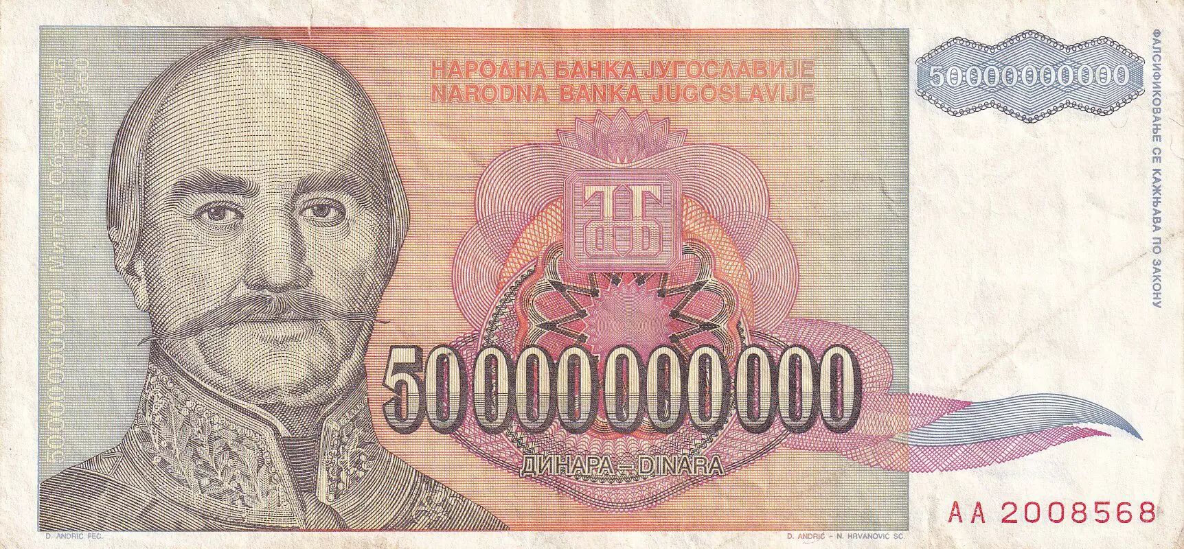 Accueil > Archivage > Yougoslavie 50 Milliards Dinara - Milan Obrenovich - 1993 - Série AA - P.136