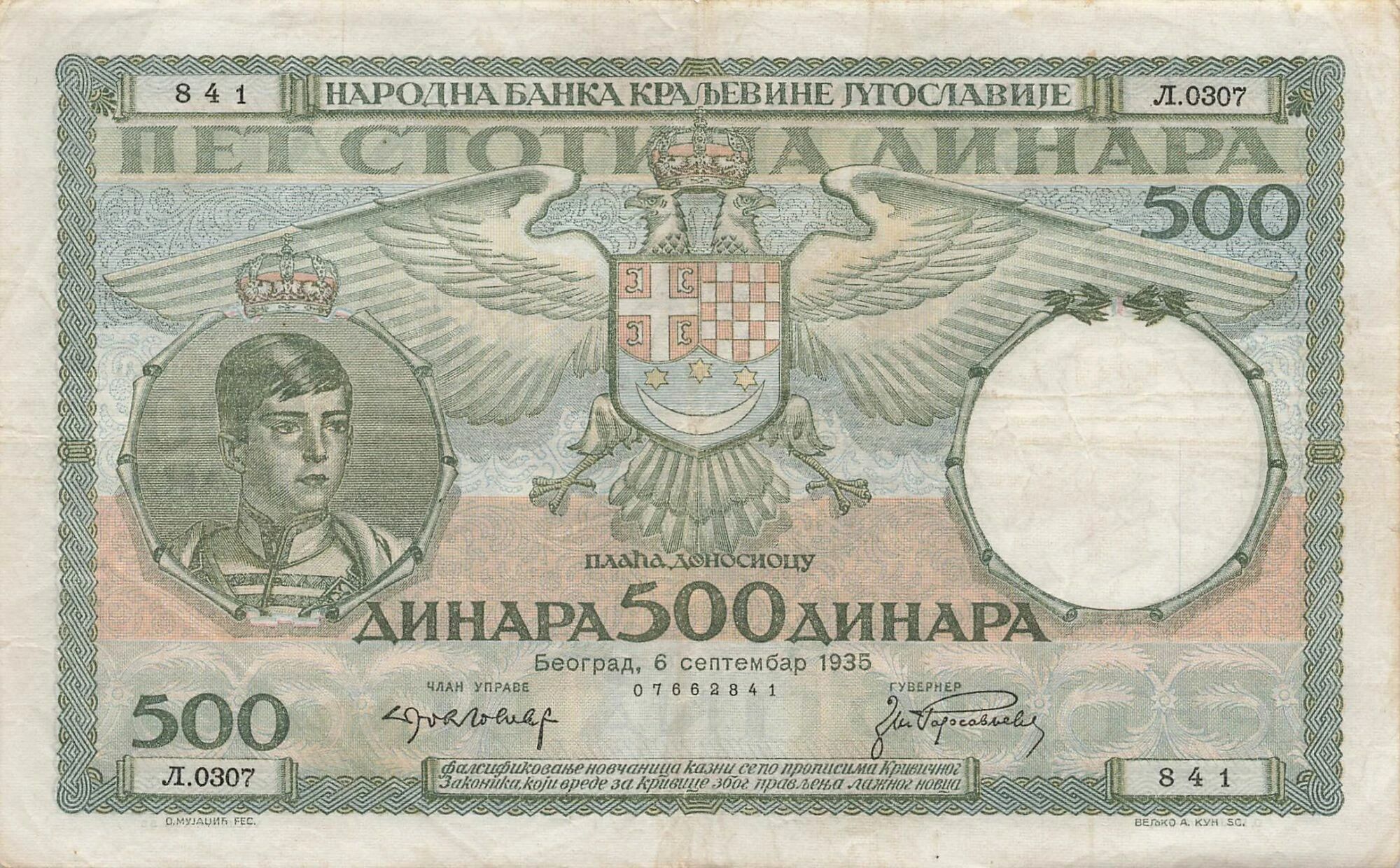 Billet Yougoslavie 500 Dinara - 1935 - P.32