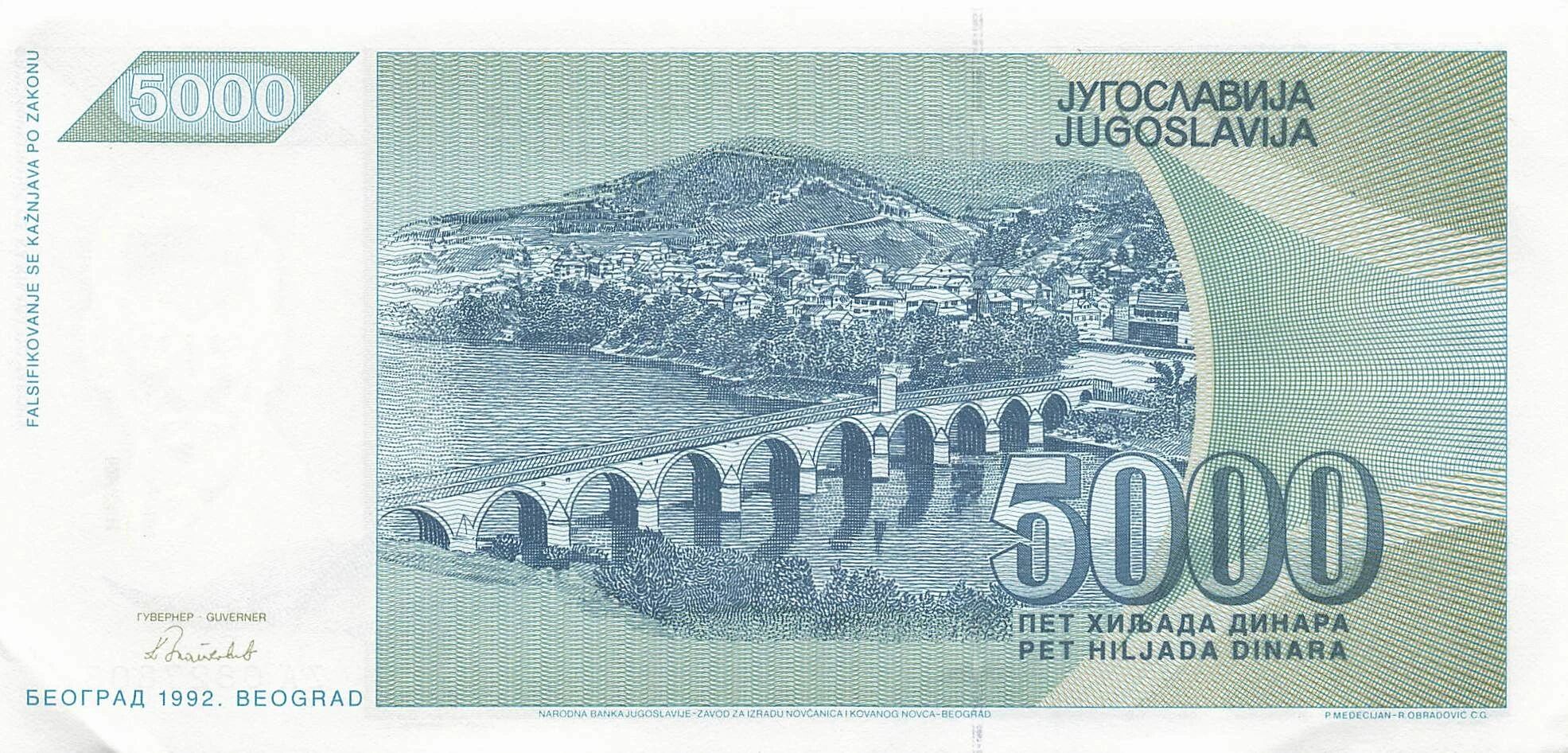 Accueil > Billets du Monde > Billets d'Europe > Yougoslavie > Yougoslavie 5000 Dinara - 1992 - Remplacement - P.115