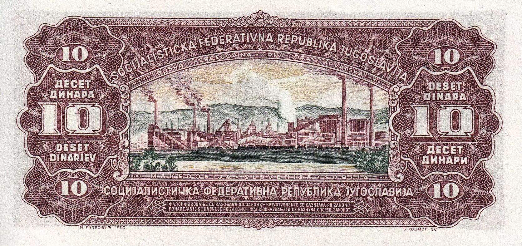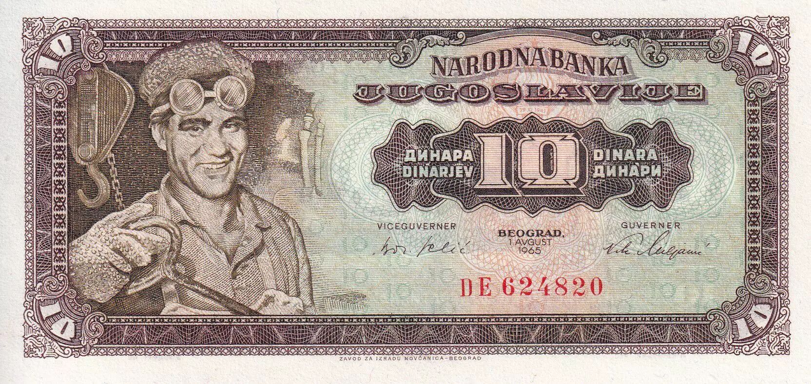Home > > Yugoslavia 10 Dinara - Worker - Factory - 1965 - Serial DE - P.78a