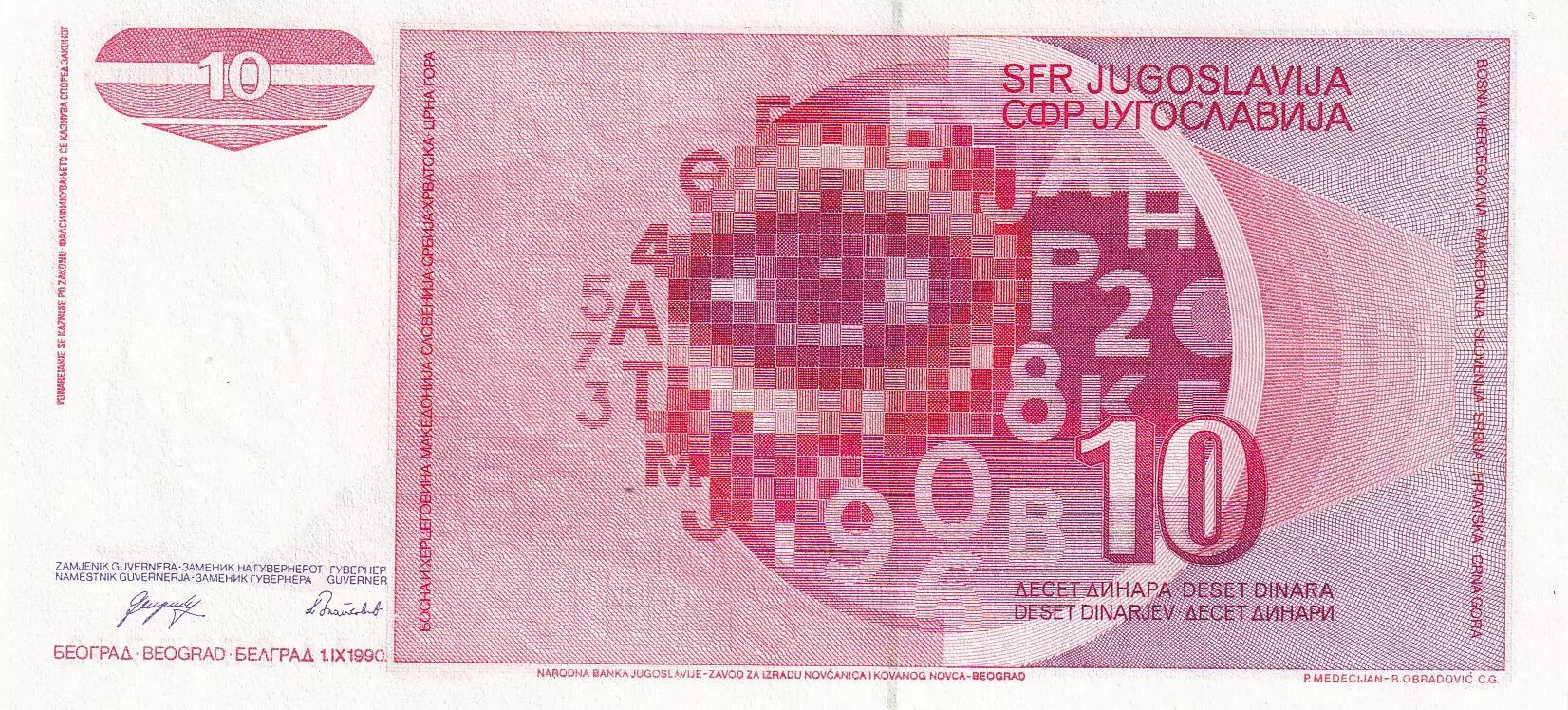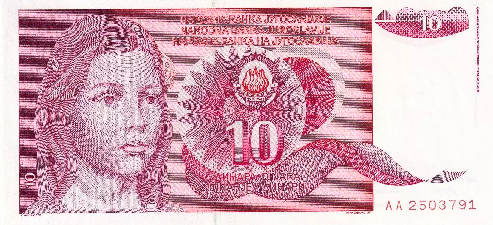 Banknote Yugoslavia 10 Dinara - Young girl - 1990 - Serial AA - P.103