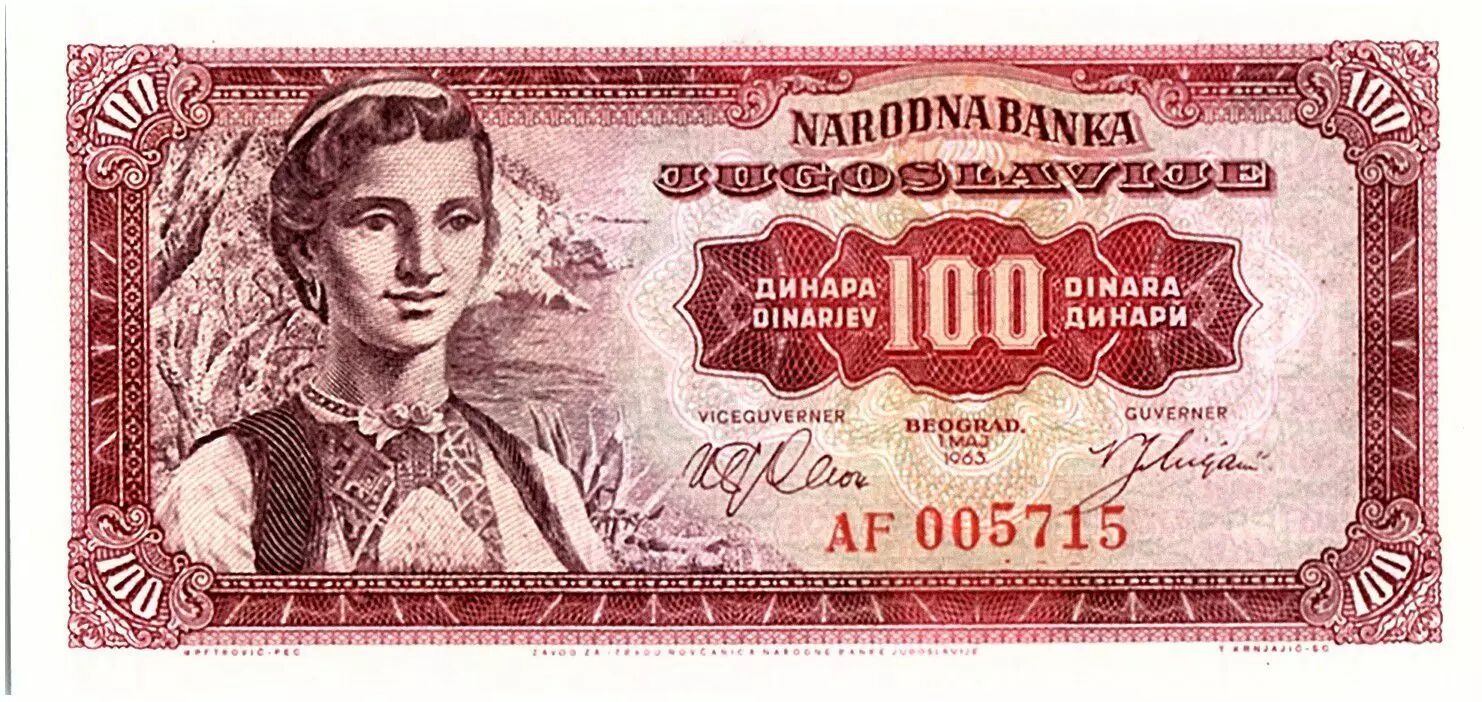 Home > > Yugoslavia 100 Dinara - Young woman, Dubrovnik - 1963 AF