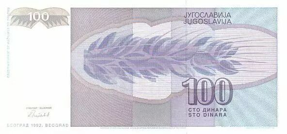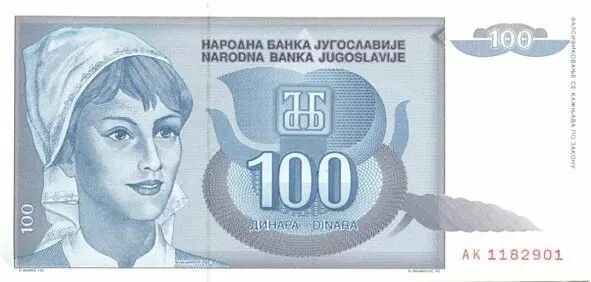 Banknote Yugoslavia 100 Dinara Young woman - Stalk