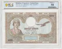 Banknote Yugoslavia 1000 Dinara 1931 - Queen Marie - PCGS AU 58