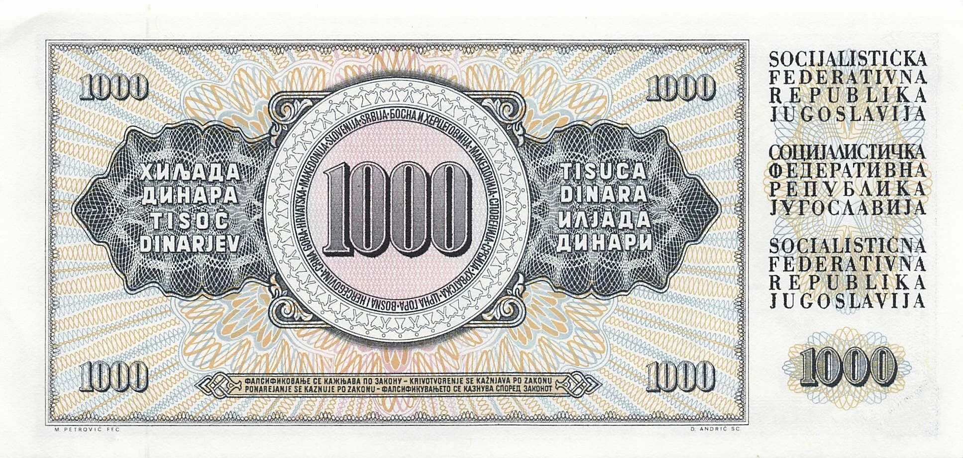 Home > World Banknotes > European Banknotes > Yugoslavia > Yugoslavia 1000 Dinara - 1981 - Replacement - P.92d