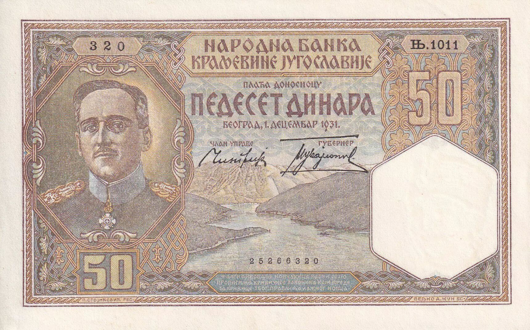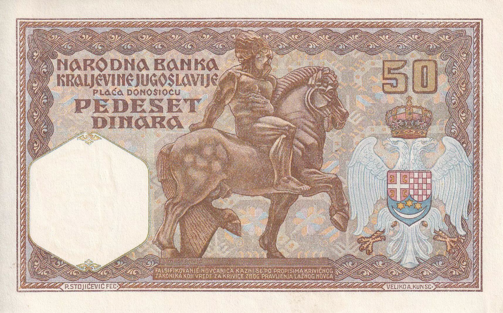 Banknote Yugoslavia 20 Dinara - King Alexander I - Equestrian statue - 1931 - P.28