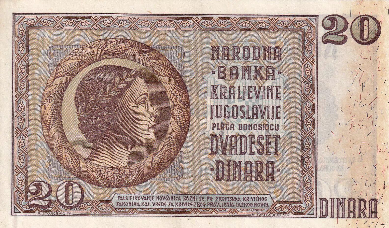Banknote Yugoslavia 20 Dinara - King Peter II - Woman - 1936 - P.30