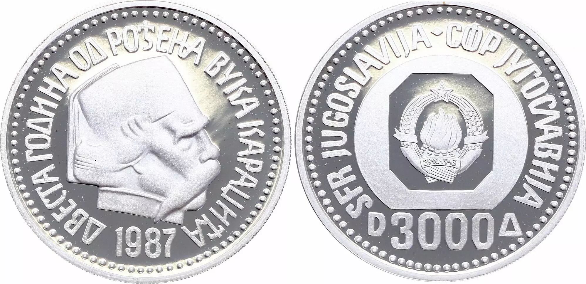 Coin Yugoslavia 3000 Dinara - 200ème anniversaire de la naissance de Vuk Karadzic- Argent - 1987 - Frappe BE