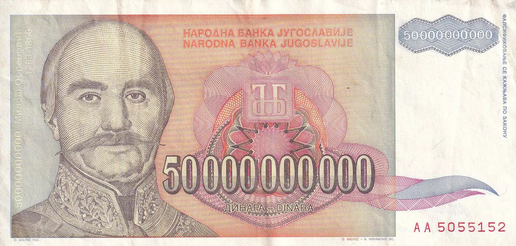 Banknote Yugoslavia 500 Trillion of Dinara - Prince Milan Obrenovich - Varieties serials - 1993 - P.136