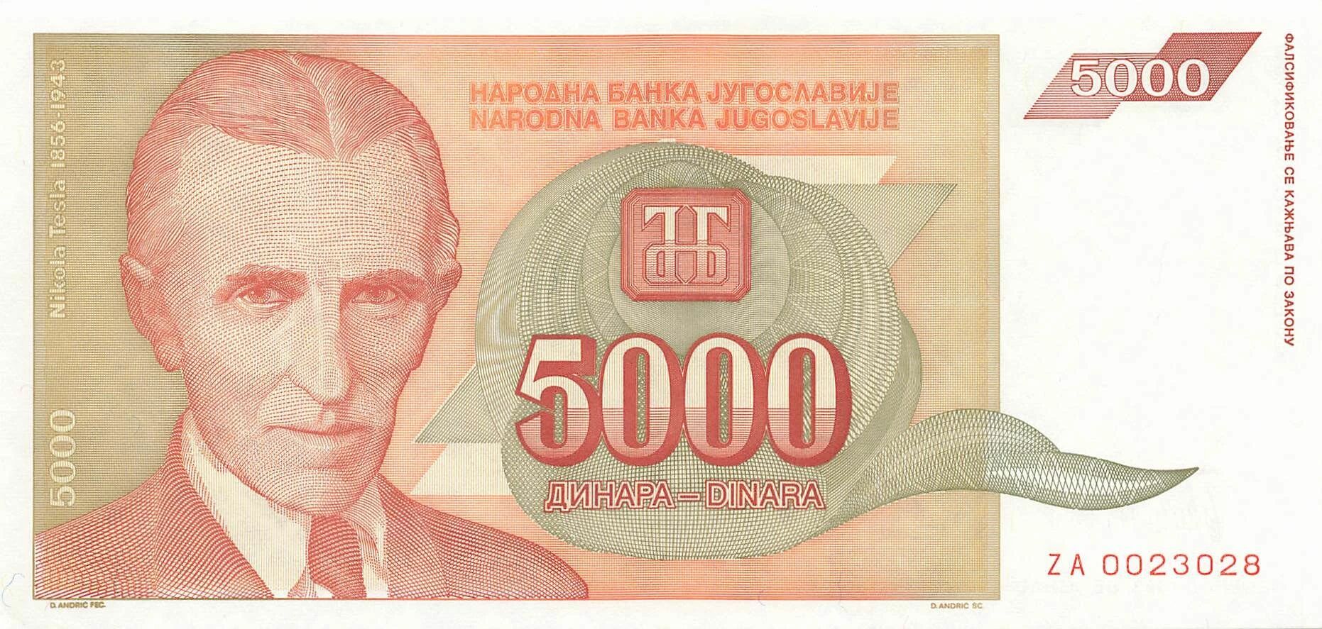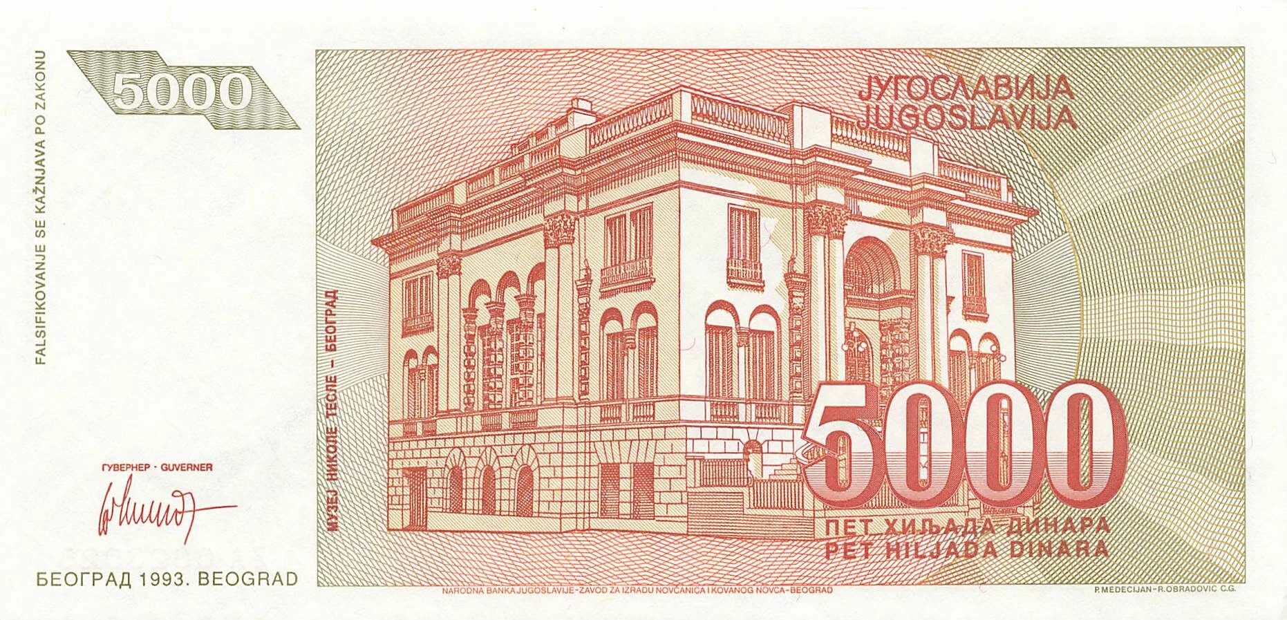 Home > World Banknotes > European Banknotes > Yugoslavia > Yugoslavia 5000 Dinara - 1993 - Replacement - P.128
