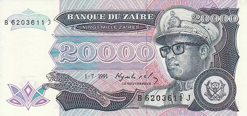 Président Sese Seko Mobutu - Banque du Zaïre - 1991