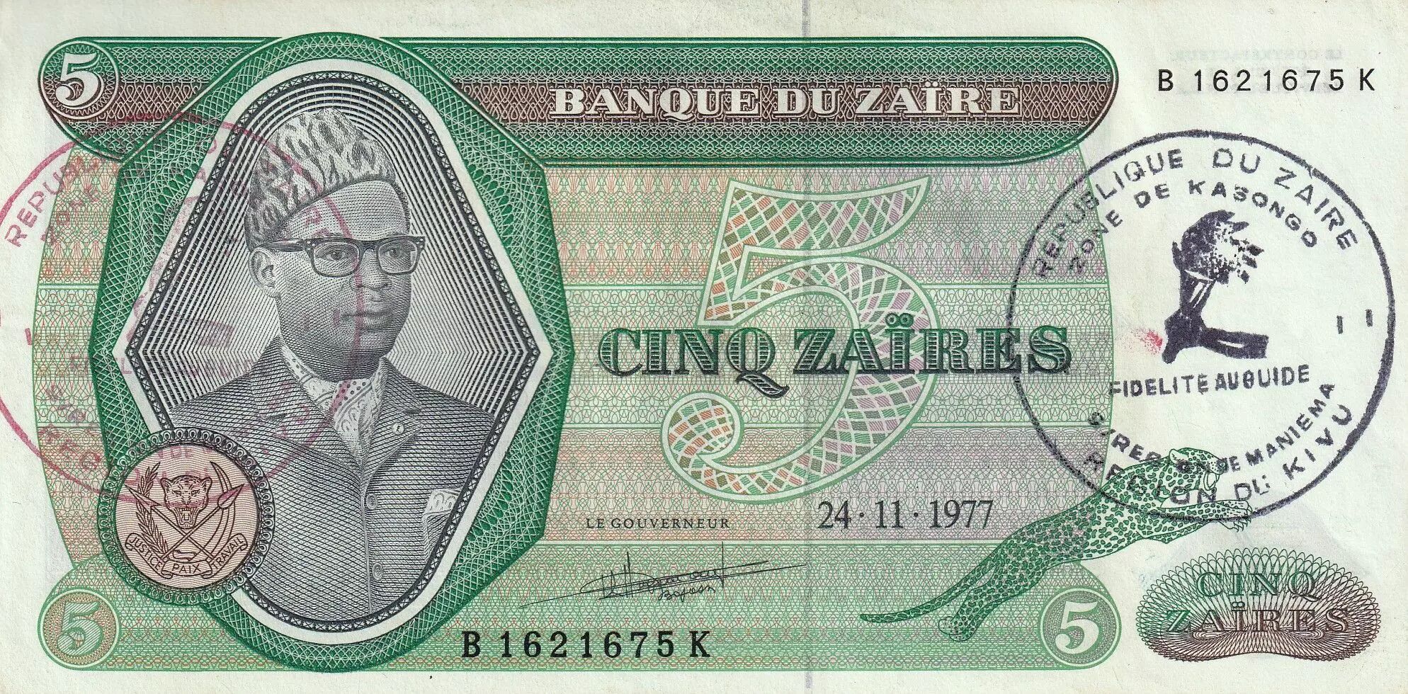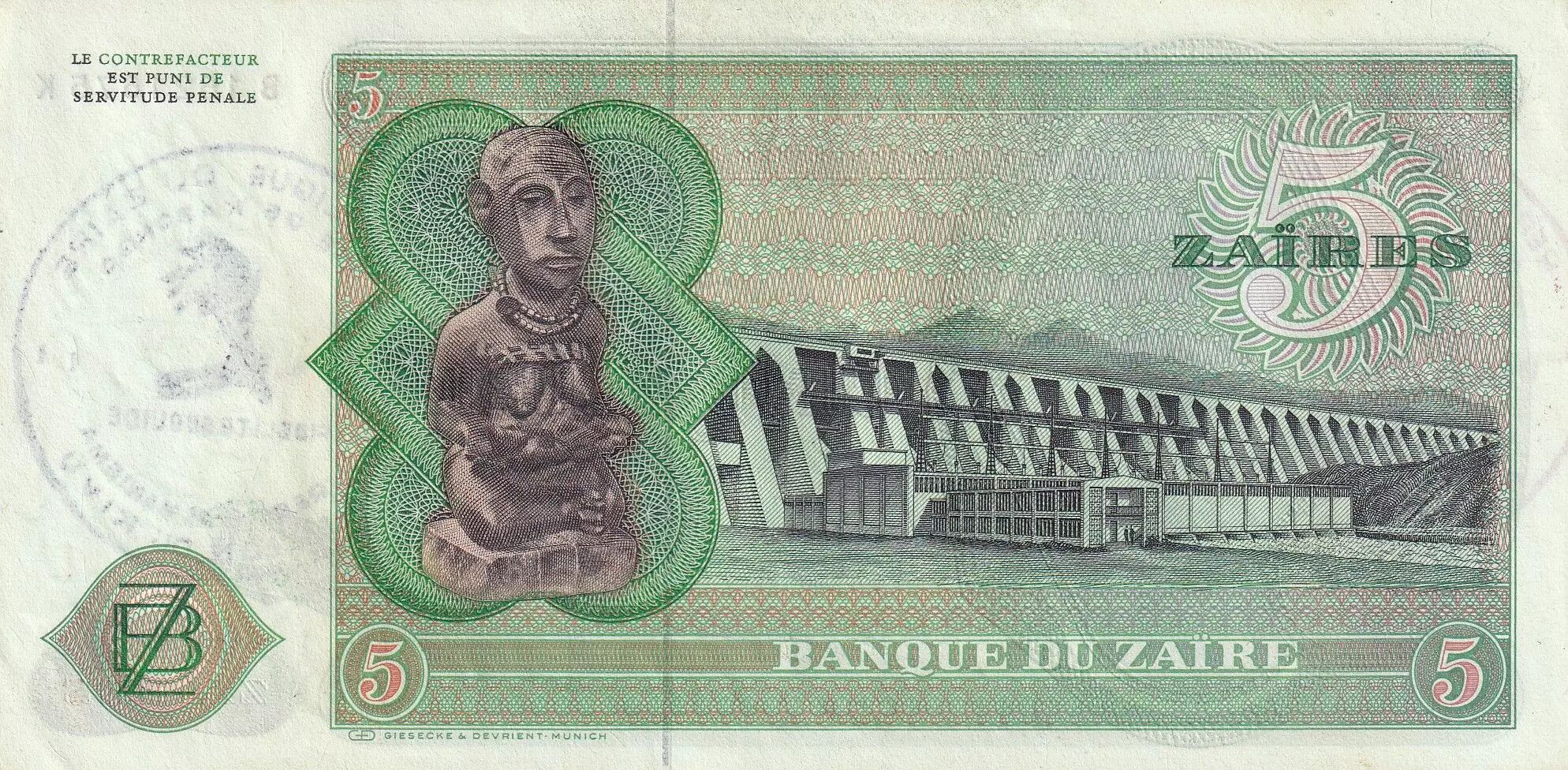 Billet Zaïre 5 Zaire - Pdt Mobutu - Barrage - 1977 - Kasongo - P.R3c