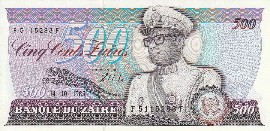 Home > World Banknotes > African Banknotes > Zaire > Zaire 500 Zaires 1985 - President Sese Seko Mobutu, Bridge
