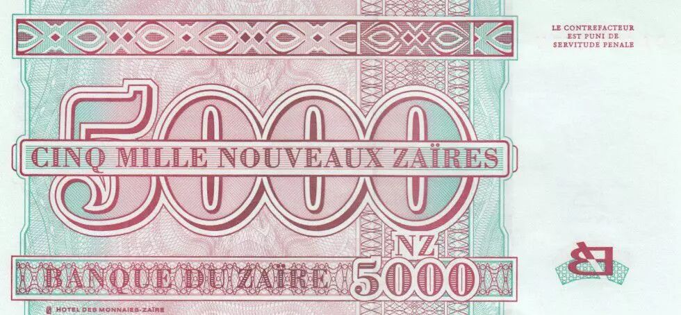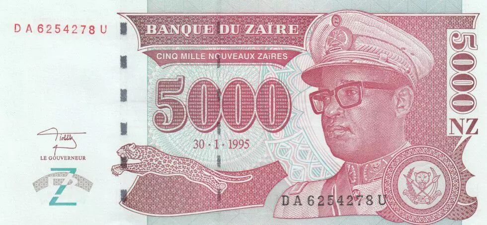 Banknote Zaire 5000 Nvx Zaires Zaires, Pdt Mobutu, leopard - Face value - 1955