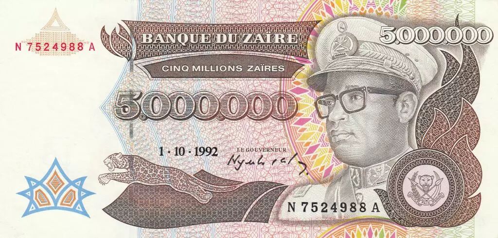 Billet Zaïre 5000000 Zaires 1992 - Président Sese Seko Mobutu, usine