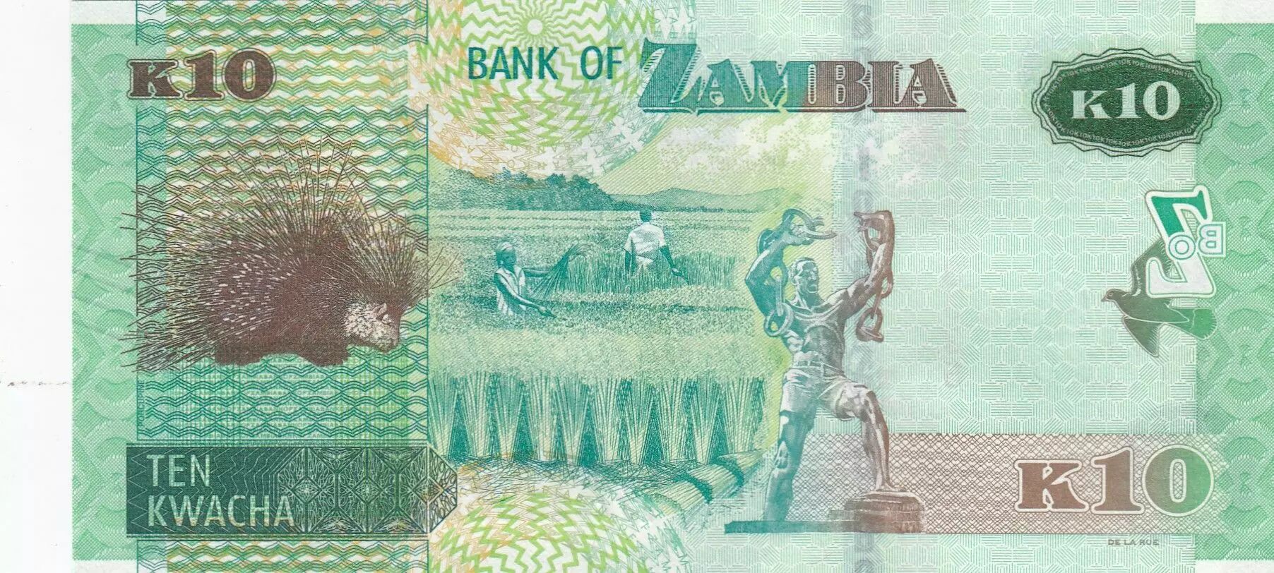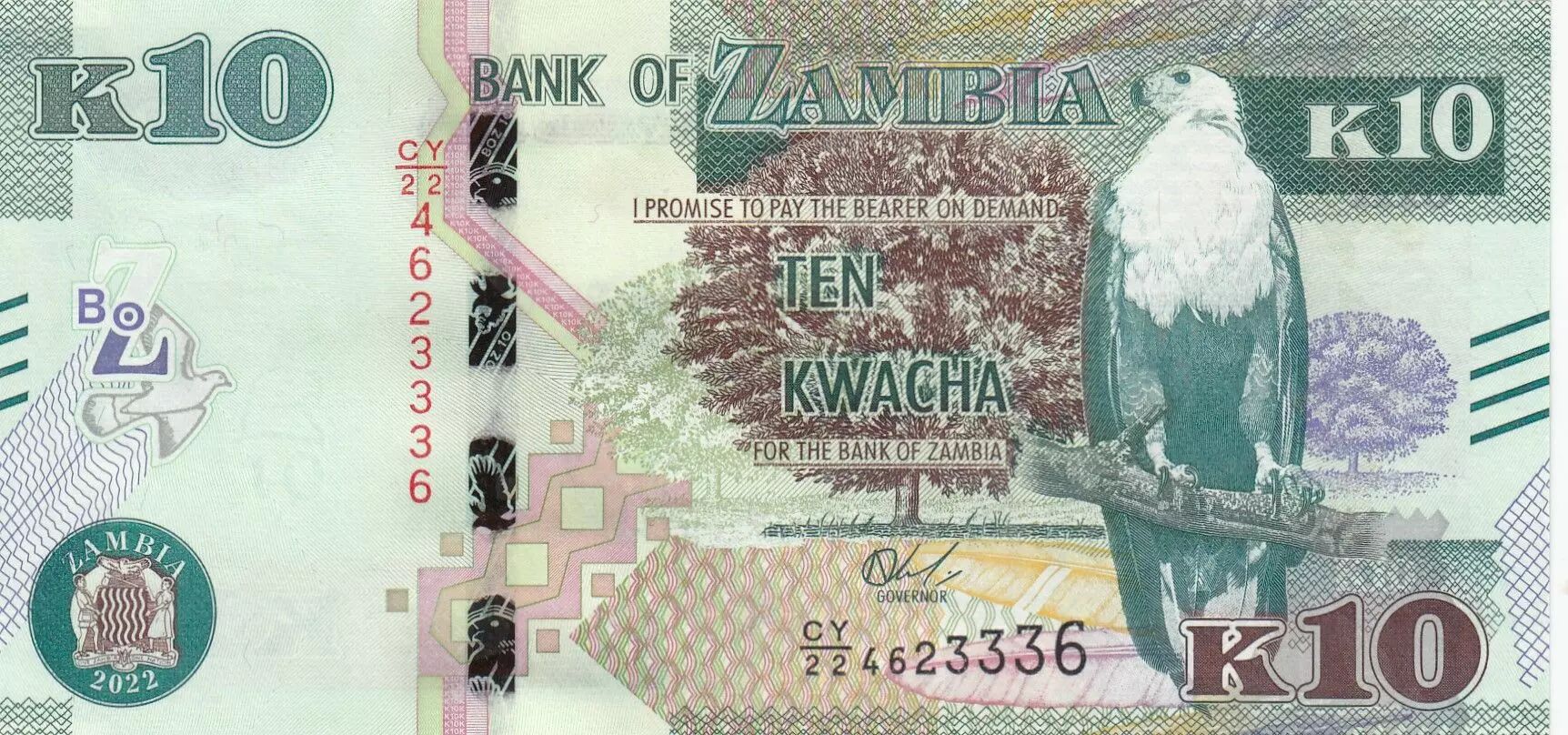 Banknote Zambia 10 Kwacha - Eagle - Porcupine - 2022 Serial CY