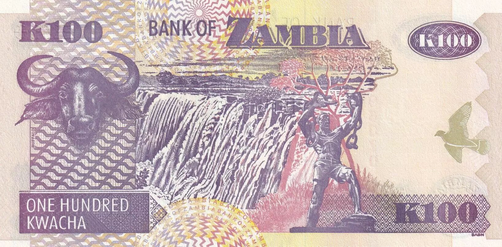 Banknote Zambia 100 Kwacha Eagle - Waterfall 2005