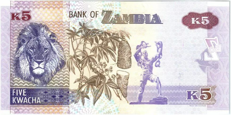 Home > World Banknotes > African Banknotes > Zambia > Zambia 5 Kwacha Eagle - Lion 2015