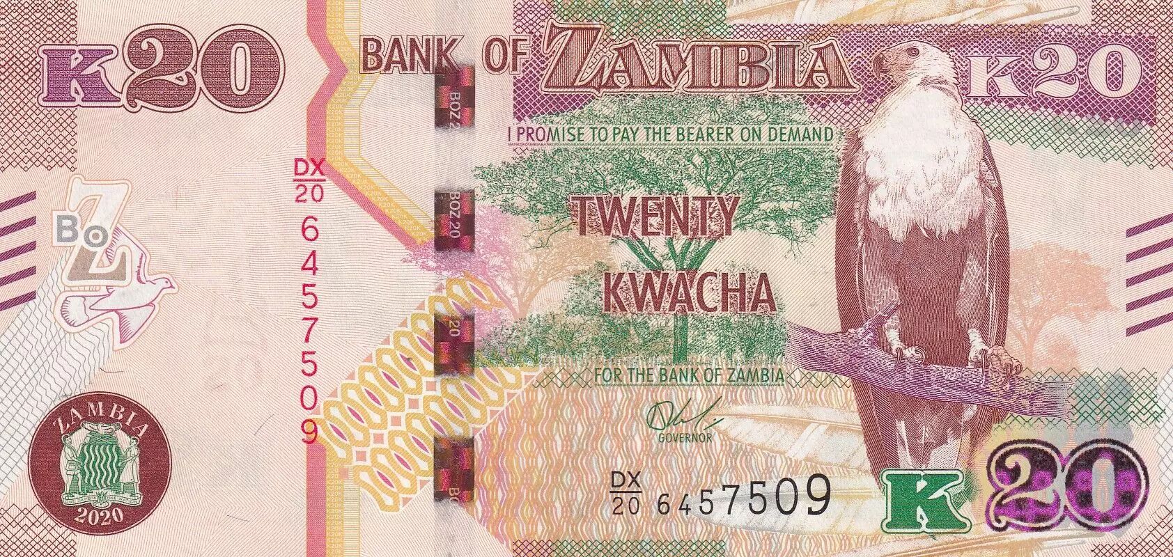 Billet Zambie 20 Kwacha - Aigle - Cobe Lechwe - 2020 - Série DX.20