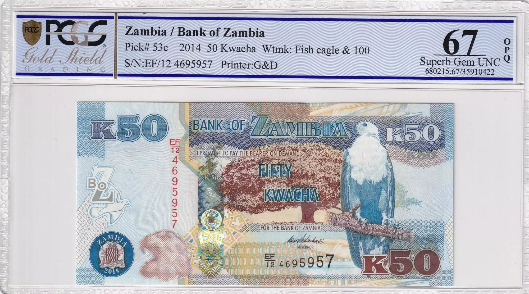 Billet Zambie 50 Kwacha Aigle - Leopard - 2014 - PCGS 67 OPQ